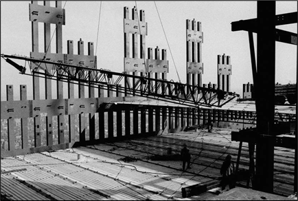 Le monde a appris le 9/11 qu’un avion en aluminium peut voler au travers des murs d’un building dont l’extérieur est en charpente d’acier. Les murs de périmètre des Tours jumelles étaient constitués d’un dense treillis de colonnes d’acier verticales et des plaques d’acier horizontales. Ces colonnes d’acier avaient 14 pouces [environ 35cm] et 40 pouces [environ 1 mètre] entre elles tout autour du building.