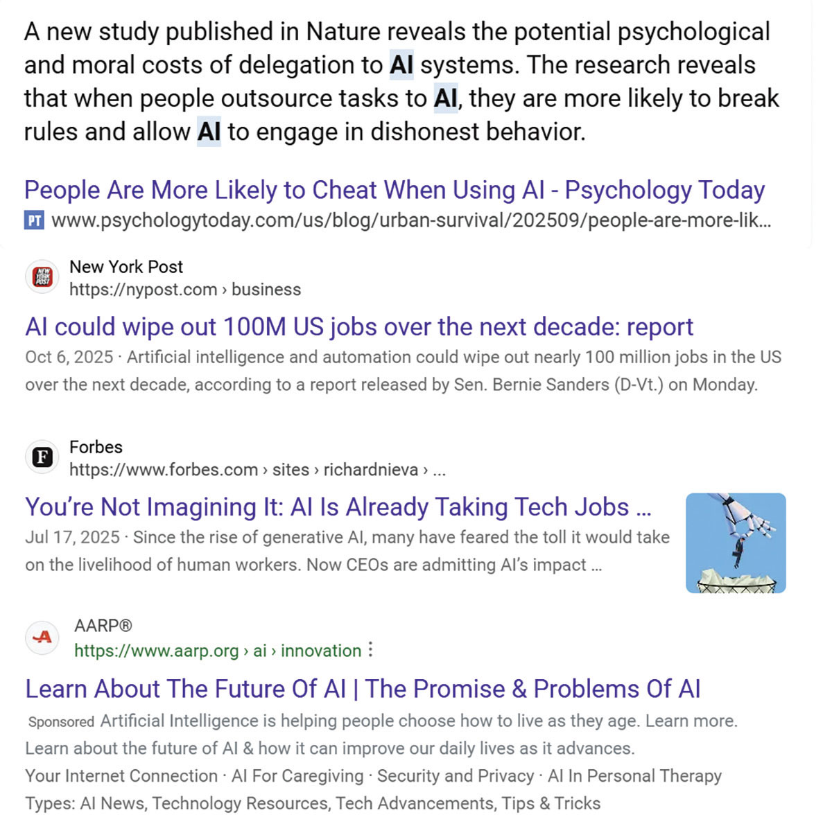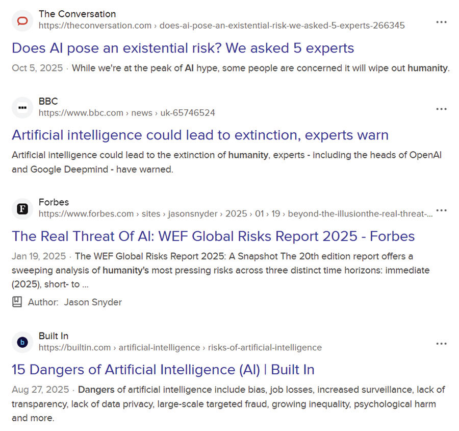 Des gros titres récents écrivent que « L’IA rend les gens paresseux, » « Les gens sont plus enclins à tricher en utilisant l’IA. » La correspondance sexuelle, la pornographie et la pornographie infantile sont déjà en usage. Même certains leaders de la haute technologie nous mettent en garde contre les dangers de l’IA.